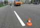 В городе на улицах наносят дорожную разметку.