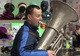 Люди в концертных галстуках-бабочках с духовыми и ударными инструментами неожиданно появились среди посетителей торгового центра и исполнили музыкальную композицию.