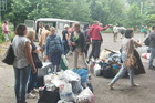 Розбирають купи будівельного сміття, виокремлюючи будматеріали, придатні для будівництва, зокрема цеглу.
