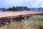 На поле валяется много мусора, в том числе и строительного, который тоже загорелся.