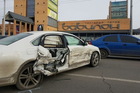 В Днепре на Богдана Хмельницкого столкнулись Mitsubishi и 136-я маршрутка: автомобиль смяло и развернуло