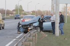 На Полтавском шоссе Chevrolet из-за ямы на дороге врезался в отбойник