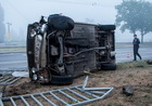 Удар был настолько сильным, что Sprinter перевернулся.