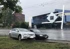 Возле Строительной академии столкнулись Skoda и Hyundai: движение трамваев заблокировано