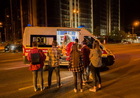Молодой человек вместе с компанией друзей перебегал дорогу, чтобы успеть на автобус.