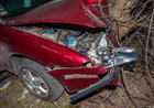 В Каменском Mercedes влетел в столб у железнодорожного моста
