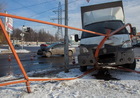 На проспекте Хмельницкого возле заправки Газель столкнулась с Toyota и снесла ограждение
