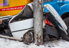 На проспекте Пушкина ГАЗ вмял Таврию в столб: пострадала девушка