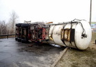 В Днепродзержинске на мосту через Днепр перевернулся бензовоз