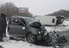 23 января в 2-х километрах от Днепропетровска в сторону Запорожья произошло крупное дорожно-транспортное происшествие - столкнулись внедорожник и микроавтобус.