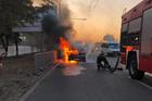 В Днепре на Запорожском шоссе автомобиль с газобаллонным оборудованием загорелся на полном ходу
