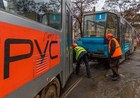 Временная приостановка движения связана с проведением работ по ремонту контактной сети по проспекту Богдана Хмельницкого.