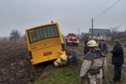 На Днепропетровщине спасатели вытащили из кювета школьный автобус, следовавший за учениками