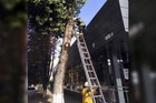 С помощью трехколенной выдвижной лестницы добрались до пушистика и сняли его с дерева с высоты, ориентировочно 8 метров.