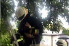В Днепре спасатели сняли с высокого дерева маленького котенка