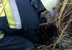 С помощью пожарного пояса, сотрудники ГСЧС освободили бедное животное из ловушки.