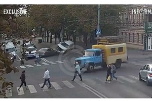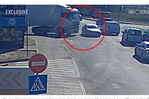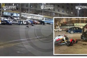 Видео момента ДТП: в Днепре на Вокзальной площади мотоциклист врезался в припаркованный автомобиль и чуть не улетел под трамвай
