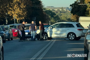 В Днепре на Нигояна Nissan врезался в Volkswagen, толкнул ее в Toyota и опрокинулся на велосипедиста: момент ДТП