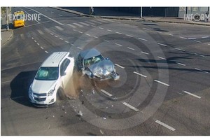 В Днепре на Набережной Заводской столкнулись два автомобиля: один из них перевернулся на крышу