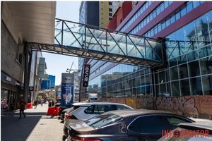 В Днепре завершают строительство стеклянного надземного перехода между двумя ТРЦ в центре