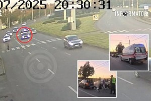 У Дніпрі на Яворницького мотоцикліст поїхав на «червоний» та зіткнувся з Hyundai: відео моменту ДТП