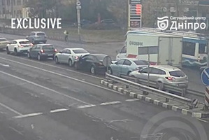 В Днепре на Слобожанском проспекте столкнулись 4 авто, образовалась пробка: видео момента